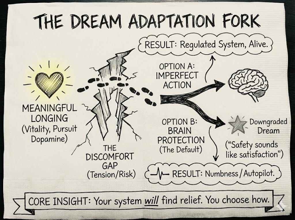 The brain reduces access to goals that create emotional friction. It lowers the volume on your dreams until safety starts sounding like satisfaction.
