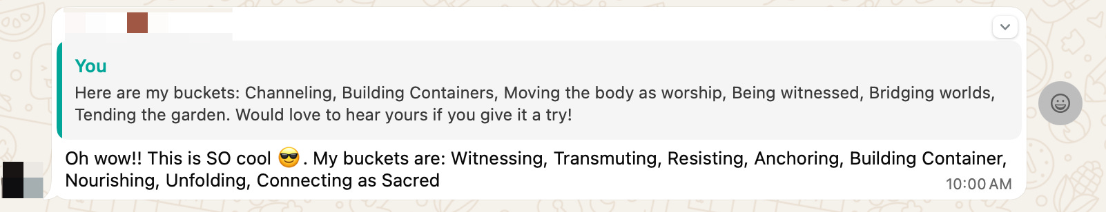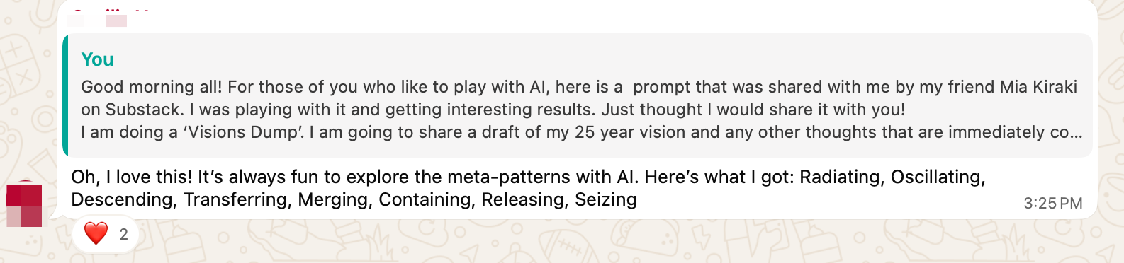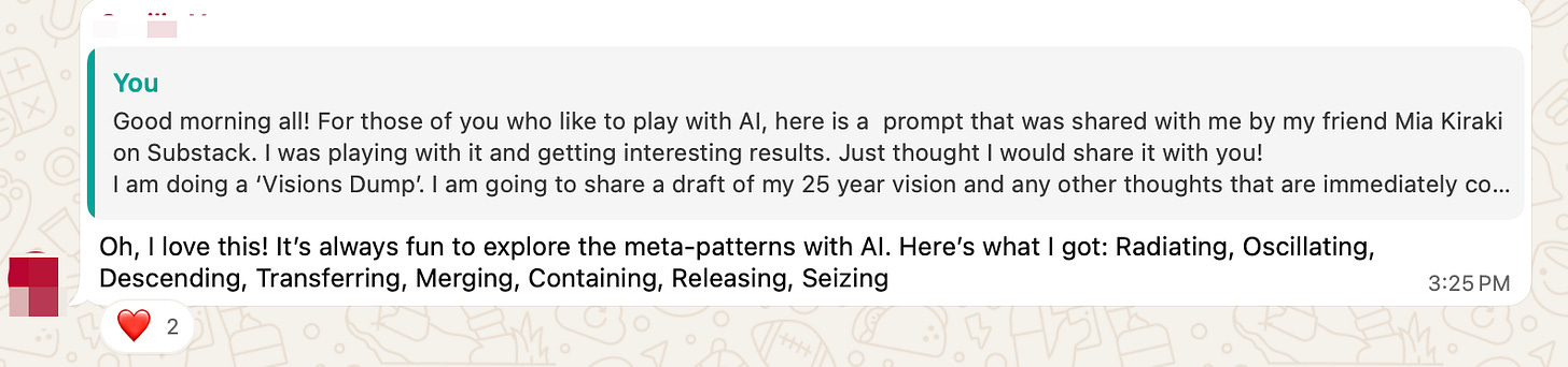 I loved the Vision Dump concept so much we shared it in our Sacred Planning Rituals Challenge Group thats currently in session. Our members absolutely loved it too. Several people ran the first ritual and were genuinely surprised by what the AI found connecting their “random” obsessions.
