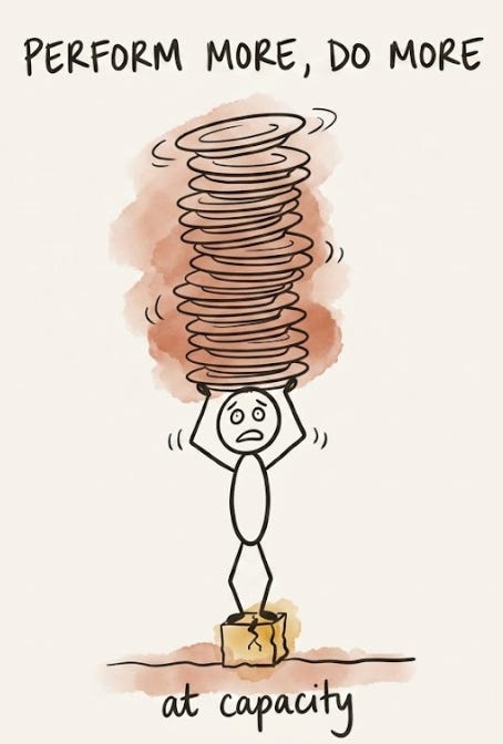 Your body can’t handle the performance anymore. The health stuff. No time for yourself. The bracing that never stops. It was never meant to last this long.