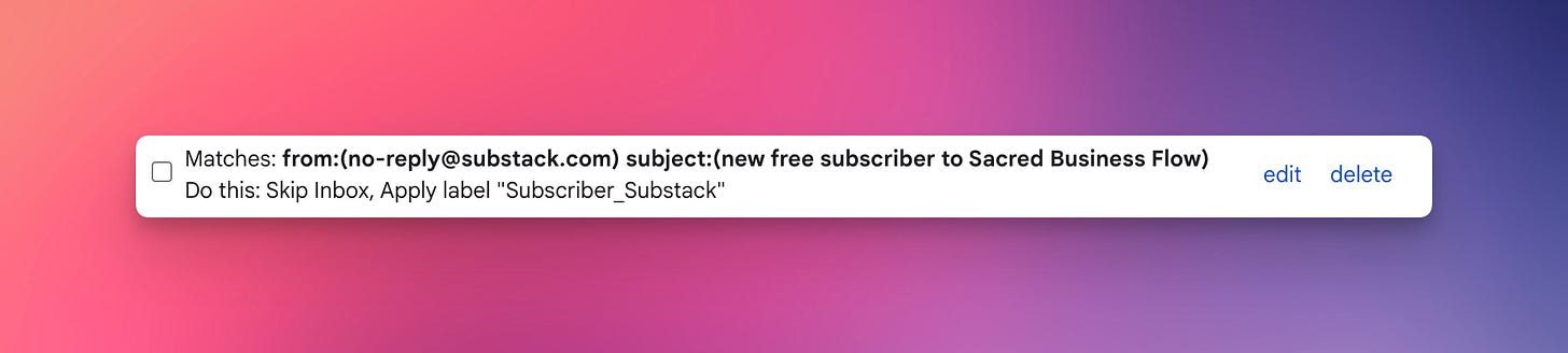Set Up Gmail Filtering. Every time someone subscribes to your Substack, you get an email notification with their email address. Create a Gmail filter based on: