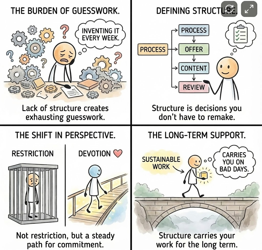 Most people think they’re stuck in their business because they need more clarity, more discipline, or more confidence. But in many cases, the issue is simpler: their work doesn’t have a stable structure around it.