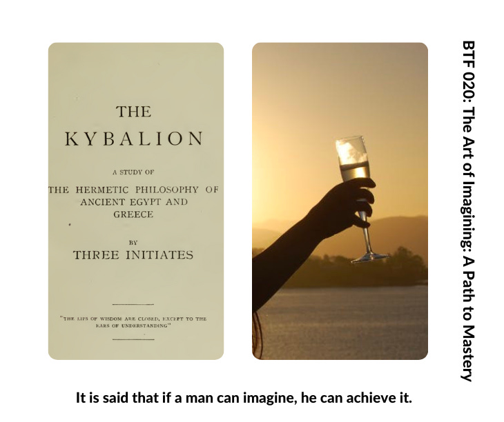 In The Kybalion, it is written "he who grasps the truth of the mental nature of the Universe is well advanced on the path to Mastery", if we can truly believe we create from our mind and the imagination is the path to create our heaven on earth then we become Masters of our own life.
