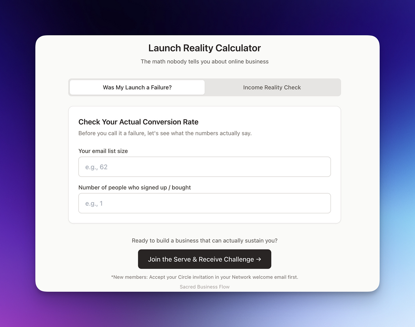 In this post, we share a Launch Reality Calculator you can use to reframe “failed” launches into data. The questions to ask yourself before you panic-pivot after a slow start. The specific conversion benchmarks for different offer types so you can stop comparing yourself to invisible backstories.