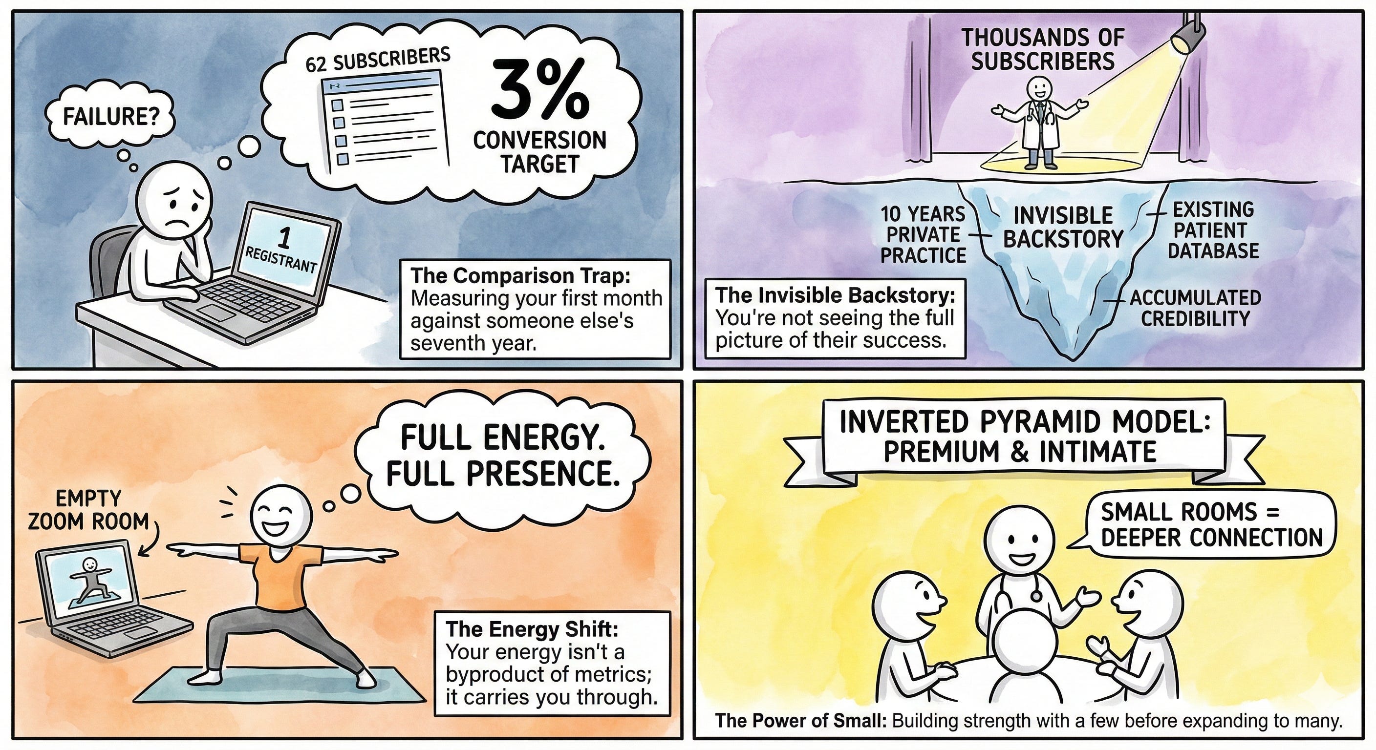 Here’s what the internet won’t tell you: most early-stage creators are succeeding by every real measure while feeling like complete failures. They’re measuring their first month against someone else’s seventh year. And the gap between those two things looks like evidence that something is wrong with them.