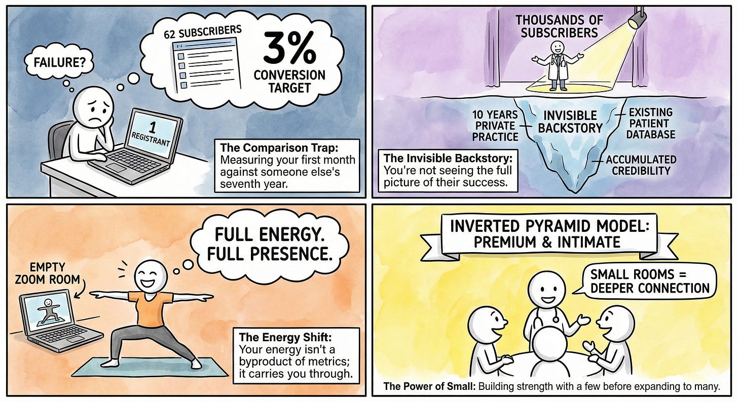 That doctor probably had a private practice for 10 years. Maybe multiple locations. Thousands of patients in their database. When they announced their Substack, they emailed that list. All those years of building trust, all that accumulated credibility, all that effort you can’t see, got compressed into what looks like instant success.