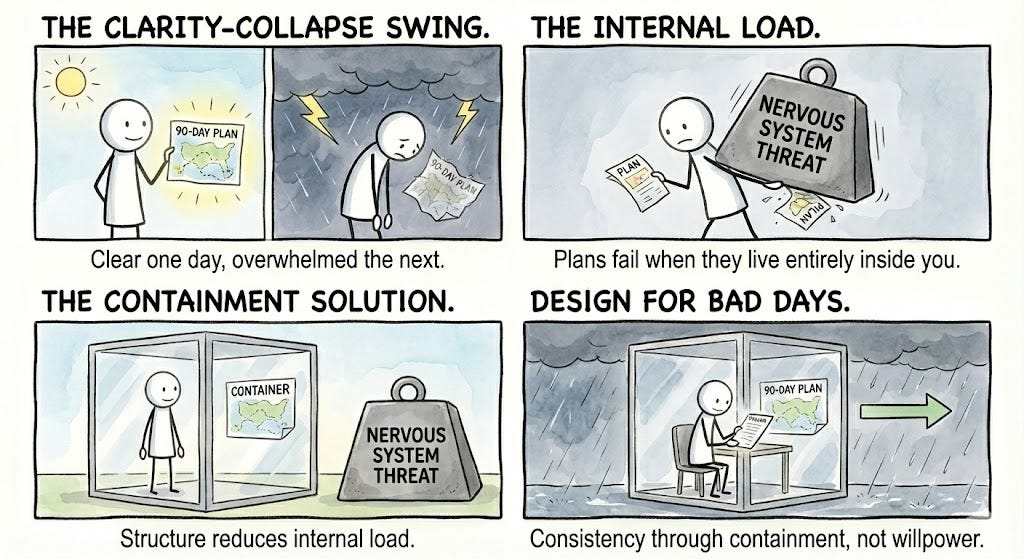 The missing piece isn’t discipline. It’s structure. Not the rigid, hustle culture kind. The kind that makes returning to the plan possible even on the hard days.