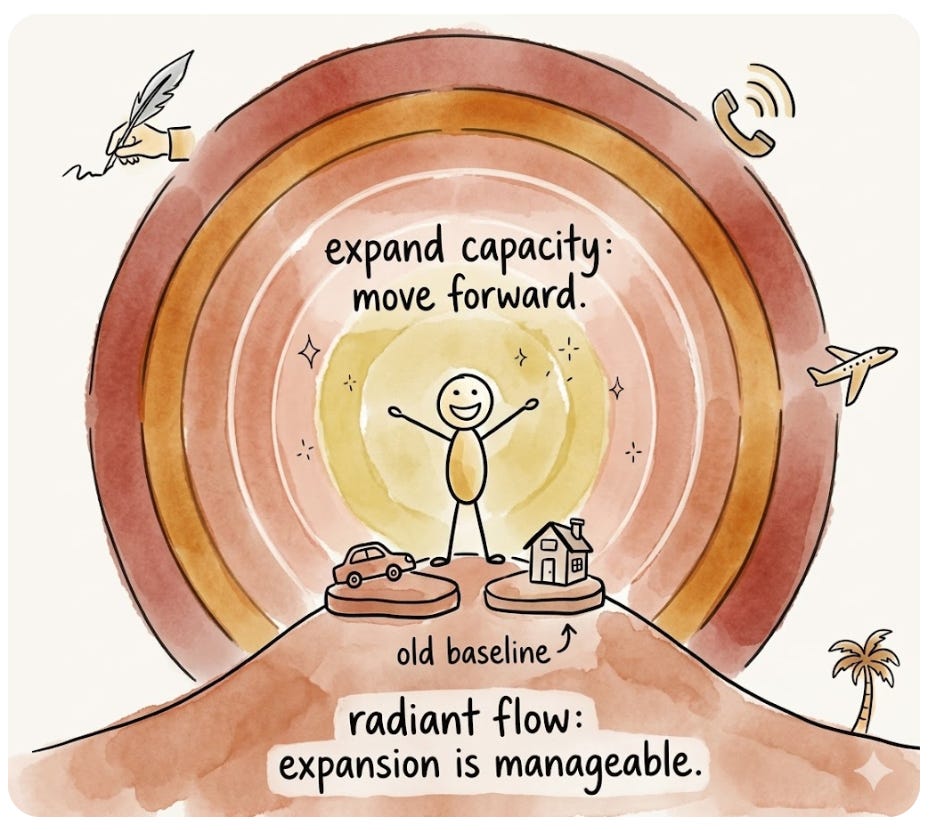 It’s called Radiant Flow. It’s a twice-weekly embodiment practice, designed to build that capacity over time, through consistent repetition rather than occasional breakthroughs.