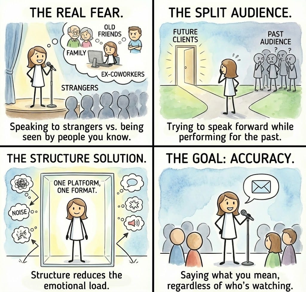 I was talking with someone recently who said she had no problem speaking to people in real life. But when she tried posting on Instagram, she froze. Not because she worried about strangers. Strangers were fine. It was the people who already knew her that made her pause.