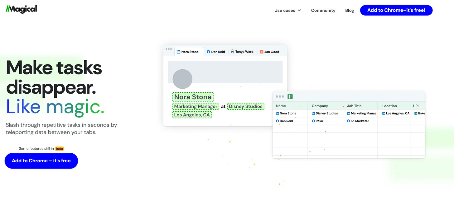 Slash through repetitive tasks in seconds by teleporting data between your tabs. Magical is a very cool tool.