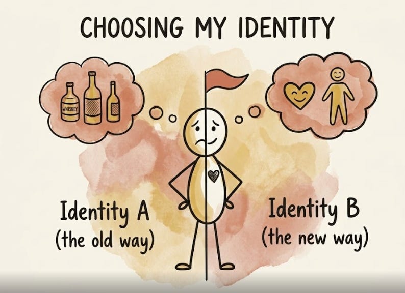 The person who started drinking chose alcohol as a way to cope with an emotion, a situation, or even an entire way of being that was too painful. In that substance, they found relief. That identity was necessary to survive.